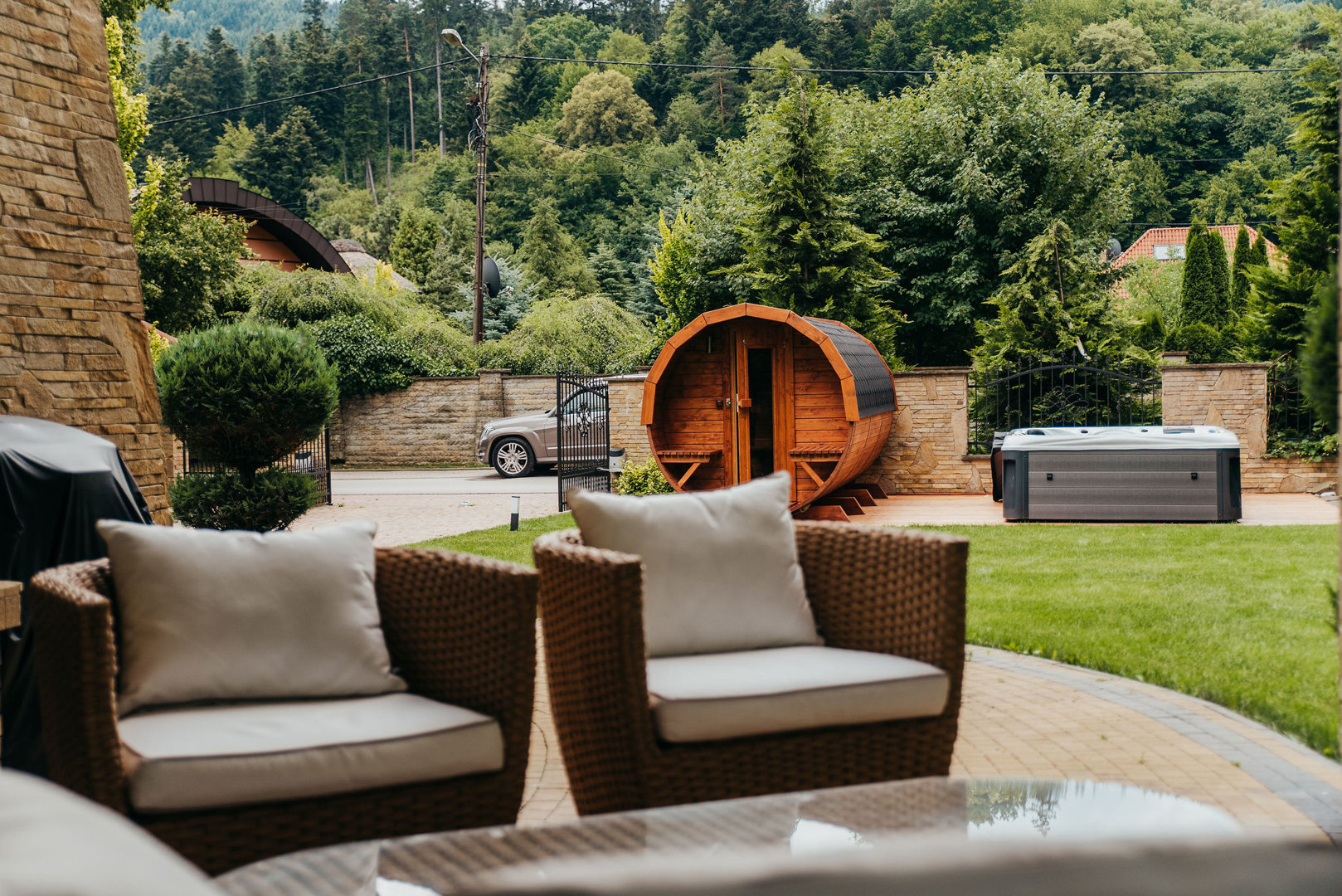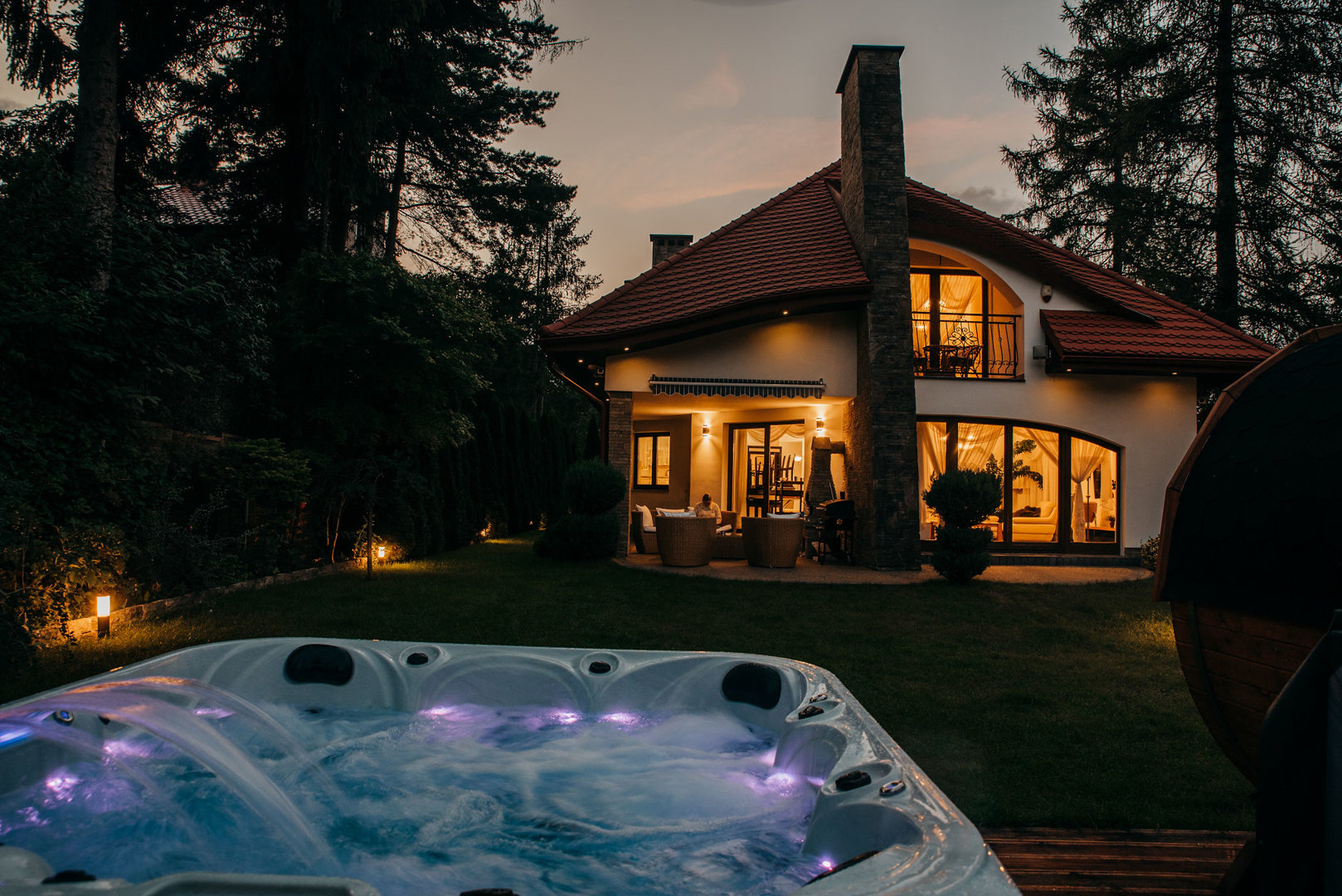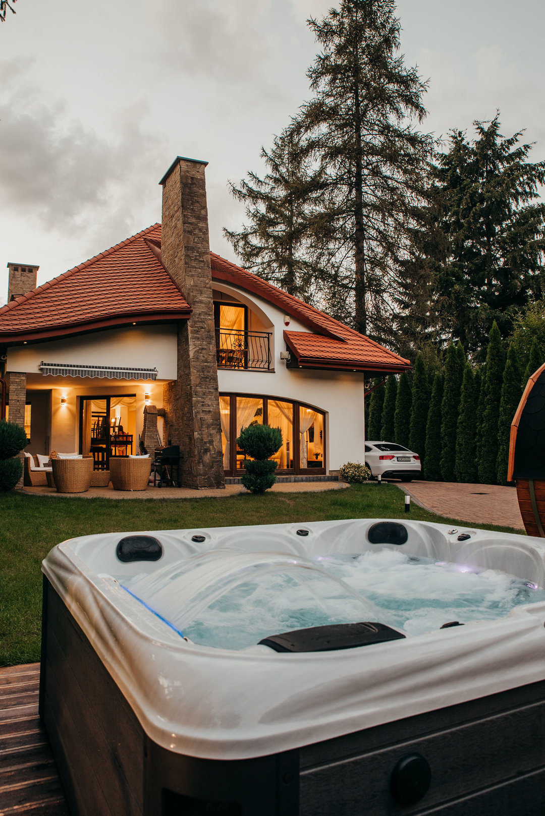 “Dom to marzenie! Byliśmy 5 osobami dorosłymi, jednym małym dzieckiem i 2 psami i wszystko działało dla nas świetnie! Gospodarz jest bardzo przyjazny, pomocny i wyrozumiały. Sauna była niesamowita, a jacuzzi jeszcze lepsze! Woda w jacuzzi była gorąca, mogła nagrzewać się do 40 stopni, więc w ekstremalnie zimne dni bardzo przyjemnie było przebywać w nim. Jest też łatwy w użyciu grill.”